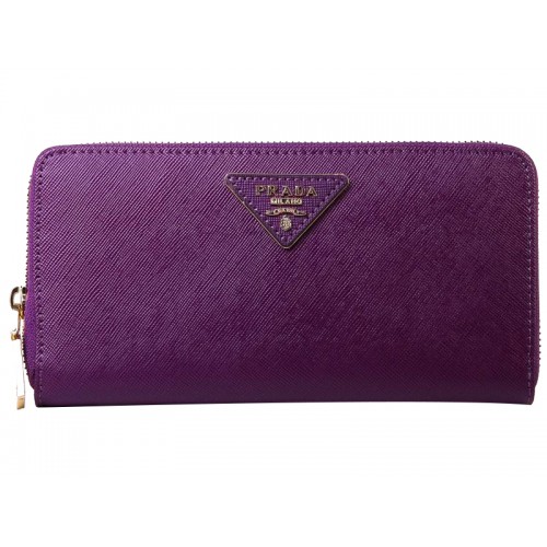 Портфейл Prada Saffiano Zippy с триъгълно лого в лилаво