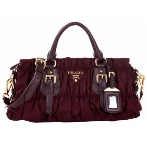Чанта Prada Tessuto Gaufre от найлон с горна дръжка, бордо