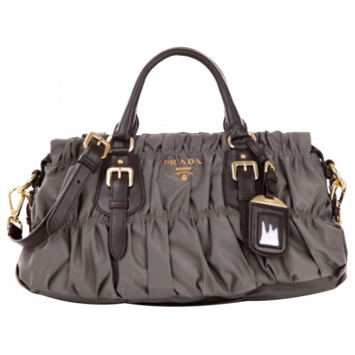 Чанта Prada Tessuto Gaufre от найлон с горна дръжка, тъмносива