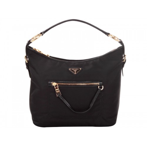 Чанта хобо Prada Tessuto от найлон с кожена тапицерия, черна