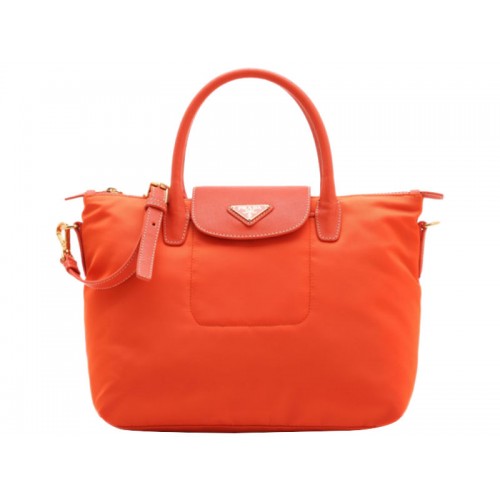 Чанта Prada Tessuto от найлон с кожена тапицерия, оранжева