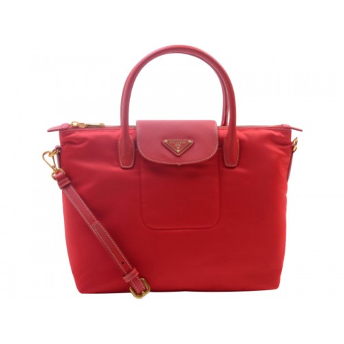 Чанта Prada Tessuto от найлон с кожена тапицерия, червена