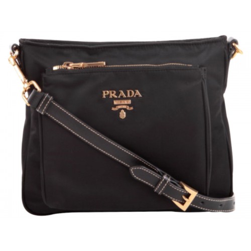 Чанта през рамо Prada Tessuto Saffian от найлон с кожа, черна