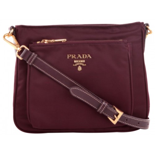 Чанта през рамо Prada Tessuto Saffian от найлон с кожа, бордо