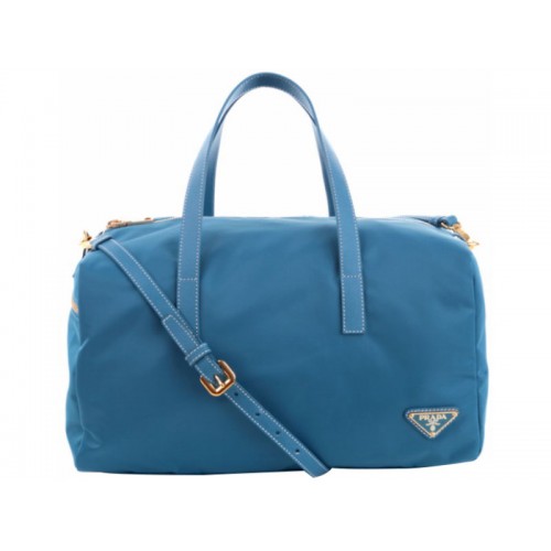Чанта Prada Vela от найлон с горна дръжка в светло синьо