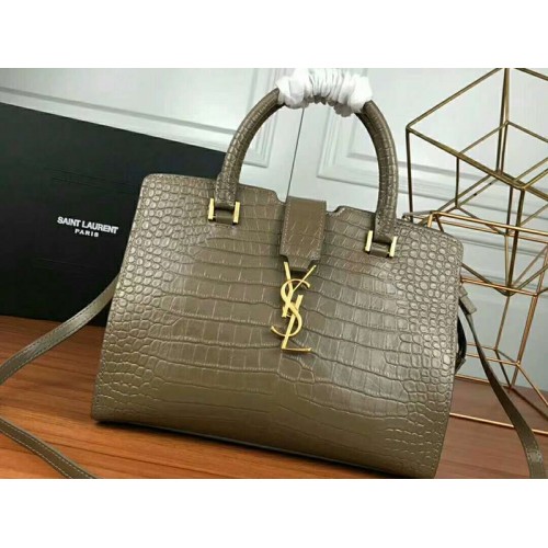 Saint Laurent Cabas Ysl Small в гладка кожа в сиво