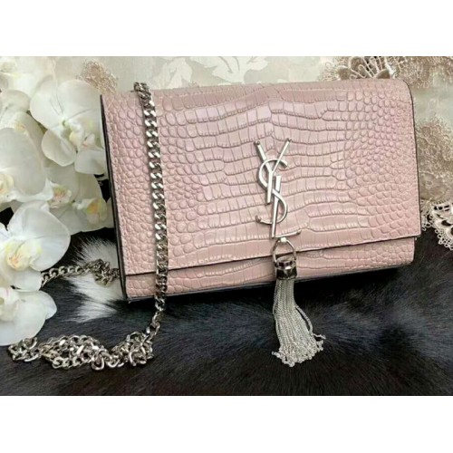 Saint Laurent Kate Medium с пискюл, лъскава кожа, светло розово