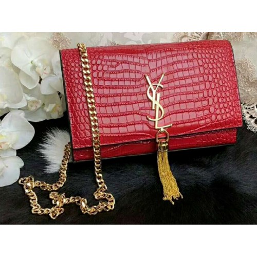 Saint Laurent Kate Medium с пискюл, лъскава кожа, червена