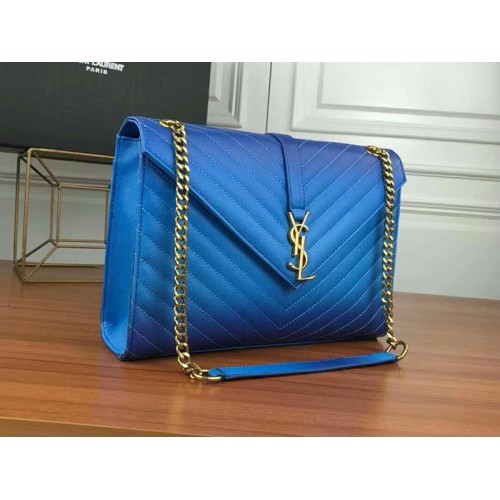 Чанта Saint Laurent Ysl Monogram от синя кожа Matelasse