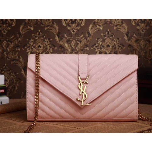 YSL чанта с монограм среден размер, розова, текстурирана ватирана кожа с прахообразен принт