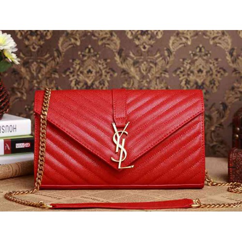YSL чанта с монограм среден размер, ватирана от червена прахообразна текстура