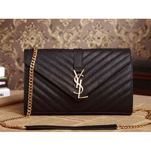 Чанта YSL Medium Monogram, черна, с текстурирана ватирана кожа и прахообразен принт