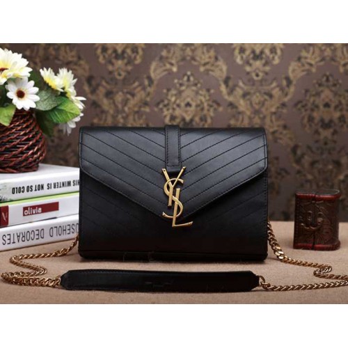 Малка чанта с монограм Ysl Черен Matelasse Antique Gold Hardware