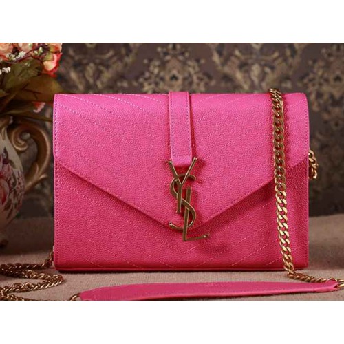 Червило за устни YSL Small Monogram Satchel, цвят фуксия, текстурирана кожа Matelasse
