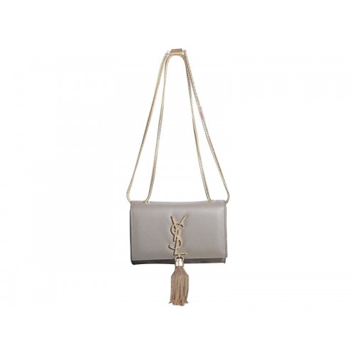 Мини чанта с монограм Yves Saint Laurent от оригинална кожа в цвят каки