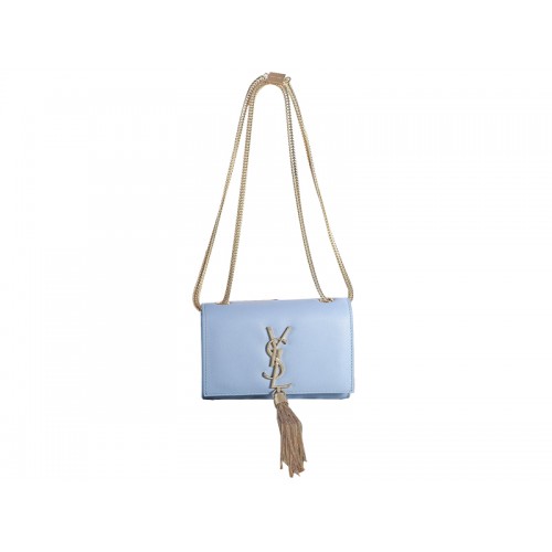 Мини чанта Yves Saint Laurent с монограм от оригинална кожа в светлосиньо