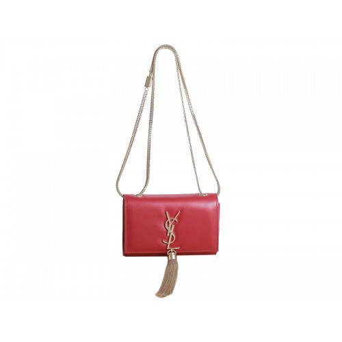 Мини чанта с монограм Yves Saint Laurent от оригинална кожа, червена