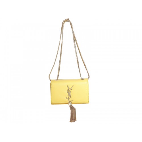Мини чанта с монограм Yves Saint Laurent от оригинална жълта кожа