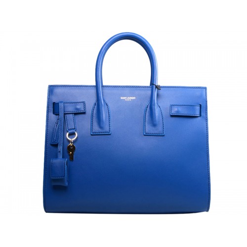 Ив Сен Лоран Sac Du Jour Tote от оригинална кожа, електриково синьо